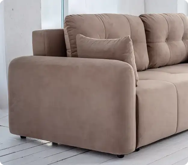 Особенности диванаВ комплекте с диваном Stone идут две подушки с наполнителем из крошки ППУ, которая не вызывает аллергии и хорошо сохраняет форму. Съемные чехлы на подушках позволяют легко ухаживать за ними, поддерживая чистоту и свежесть. Задний упор служит дополнительной фиксацией подлокотников, обеспечивая стабильность и надежность конструкции.